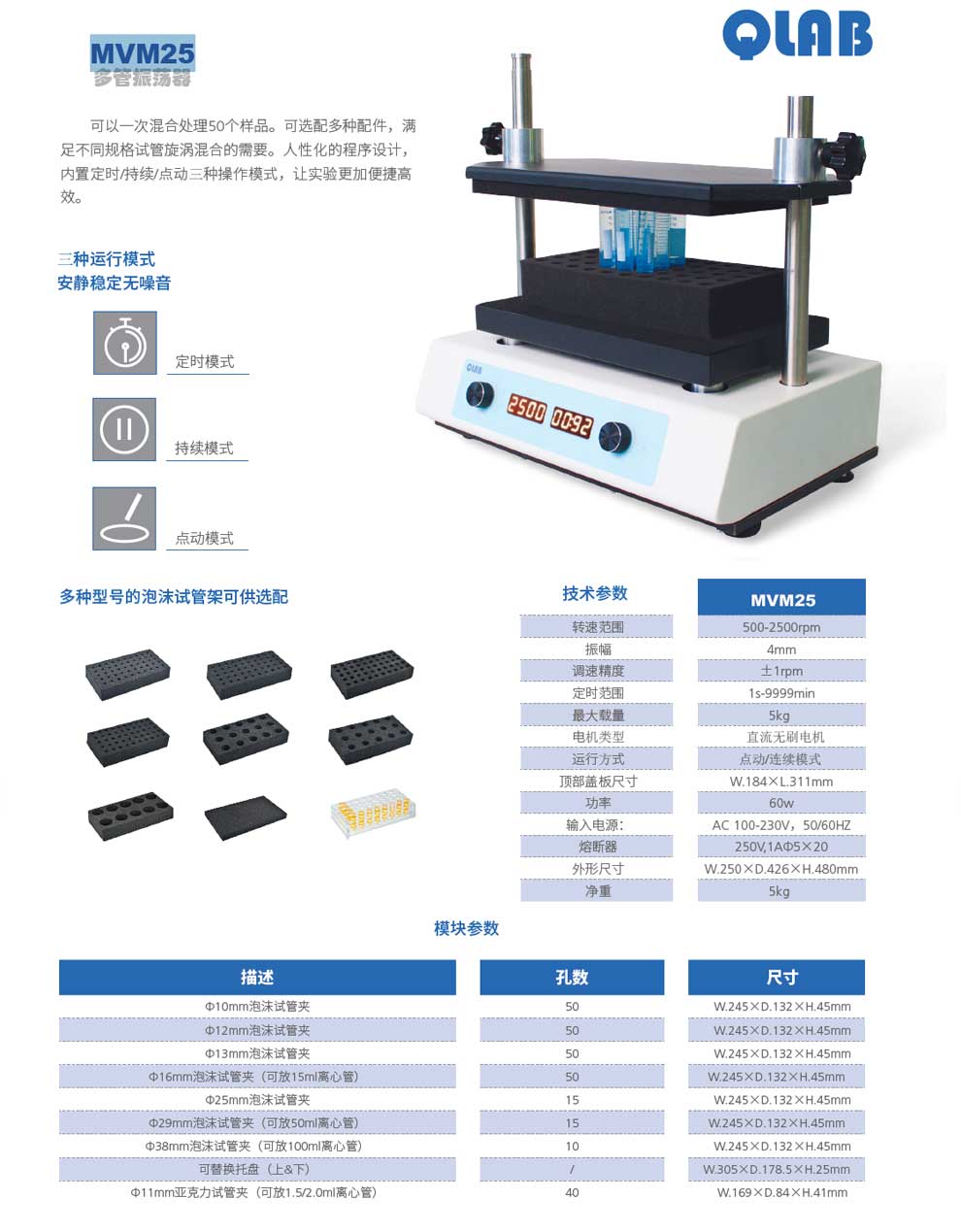 | 可以一次混合處理50個樣品。可選配多種配件,滿足不同規(guī)格試管旋渦混合的需要。人性化的程序設(shè)計,內(nèi)置定時/持續(xù)/點動三種操作模式,讓實驗更加便捷高效。 |